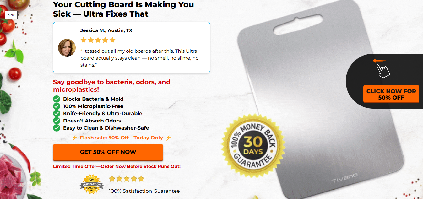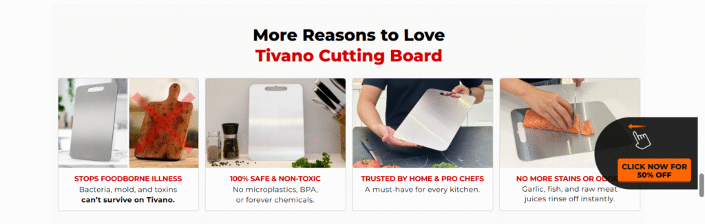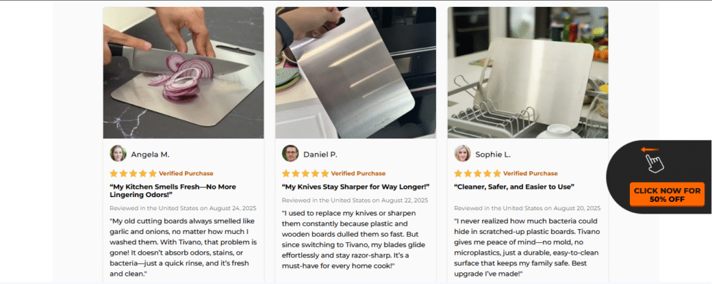 “Plastic boards trap bacteria, and wooden boards soak up meat juices—Tivano fixes all of that. I need something truly hygienic, and this is it. It keeps my knives razor-sharp and cleans instantly. Total game-changer!”
